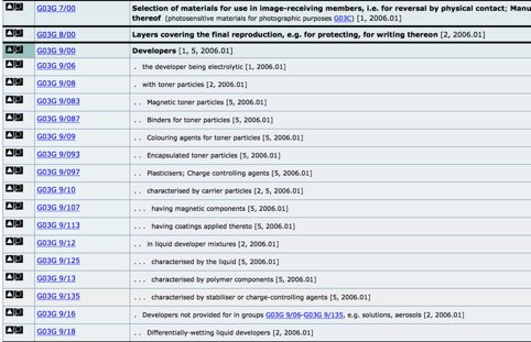 Viele Patentdatenbanken bieten keine oder nur eingeschränkte Möglichkeit zur hierarchischen Suche in den Patentklassen.